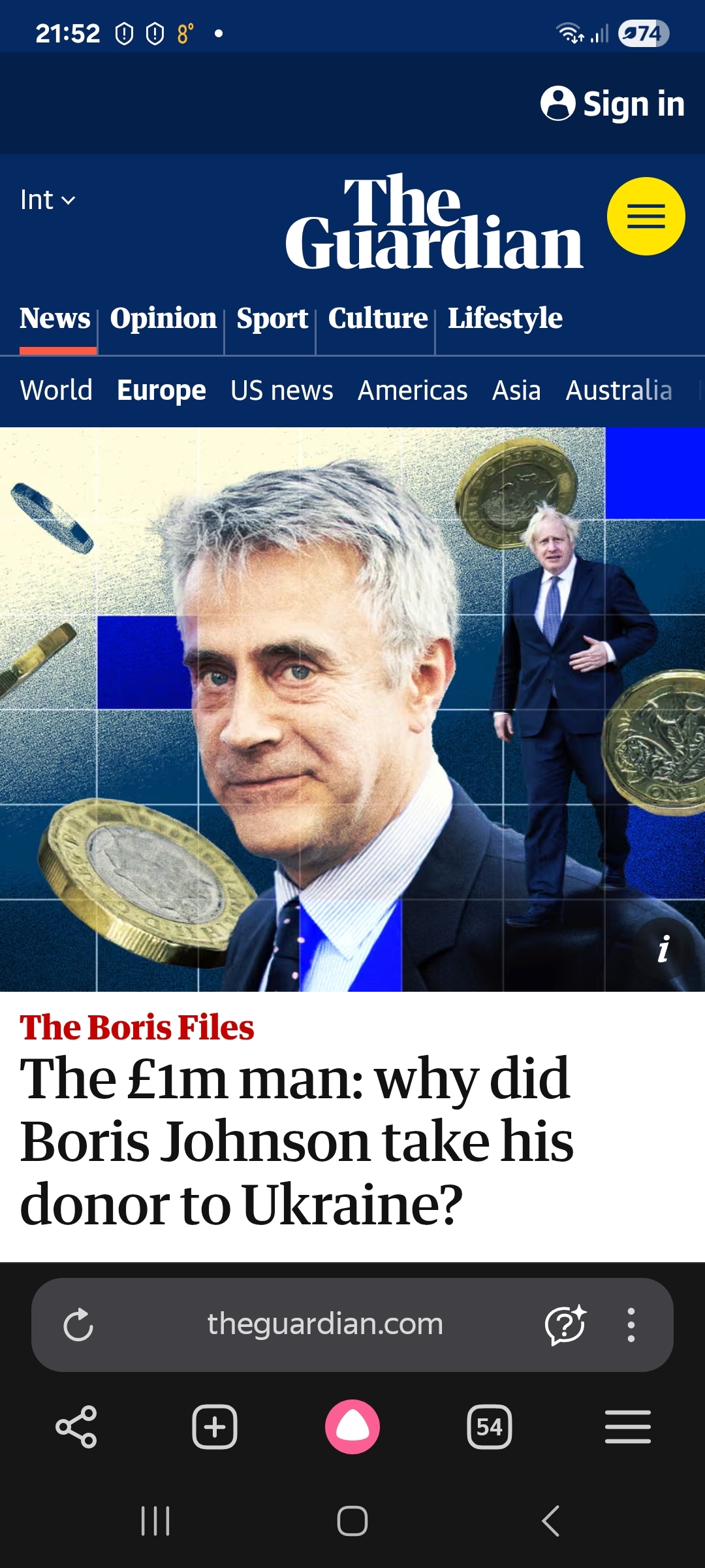 Издание пишет, что в ноябре 2022 года - через два месяца после отставки Джонсона с поста премьера - Харбон пожертвовал его компании миллион фунтов стерлингов. Платеж не был оформлен как избирательный, «что может говорить о его личном, а не политическом характере».